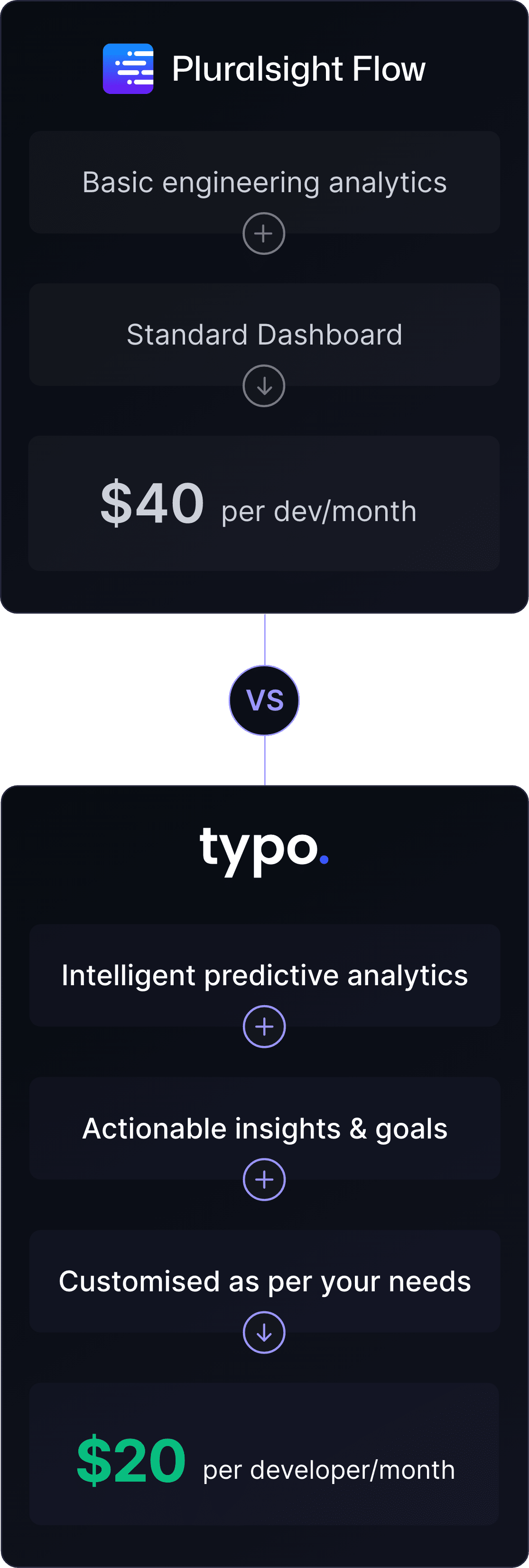 Pluralsight Flow (Gitprime) reports lack the quantitative data and mostly provide the qualitative feedback. Typo ensures the right balance of both human + system data for more accurate insights.